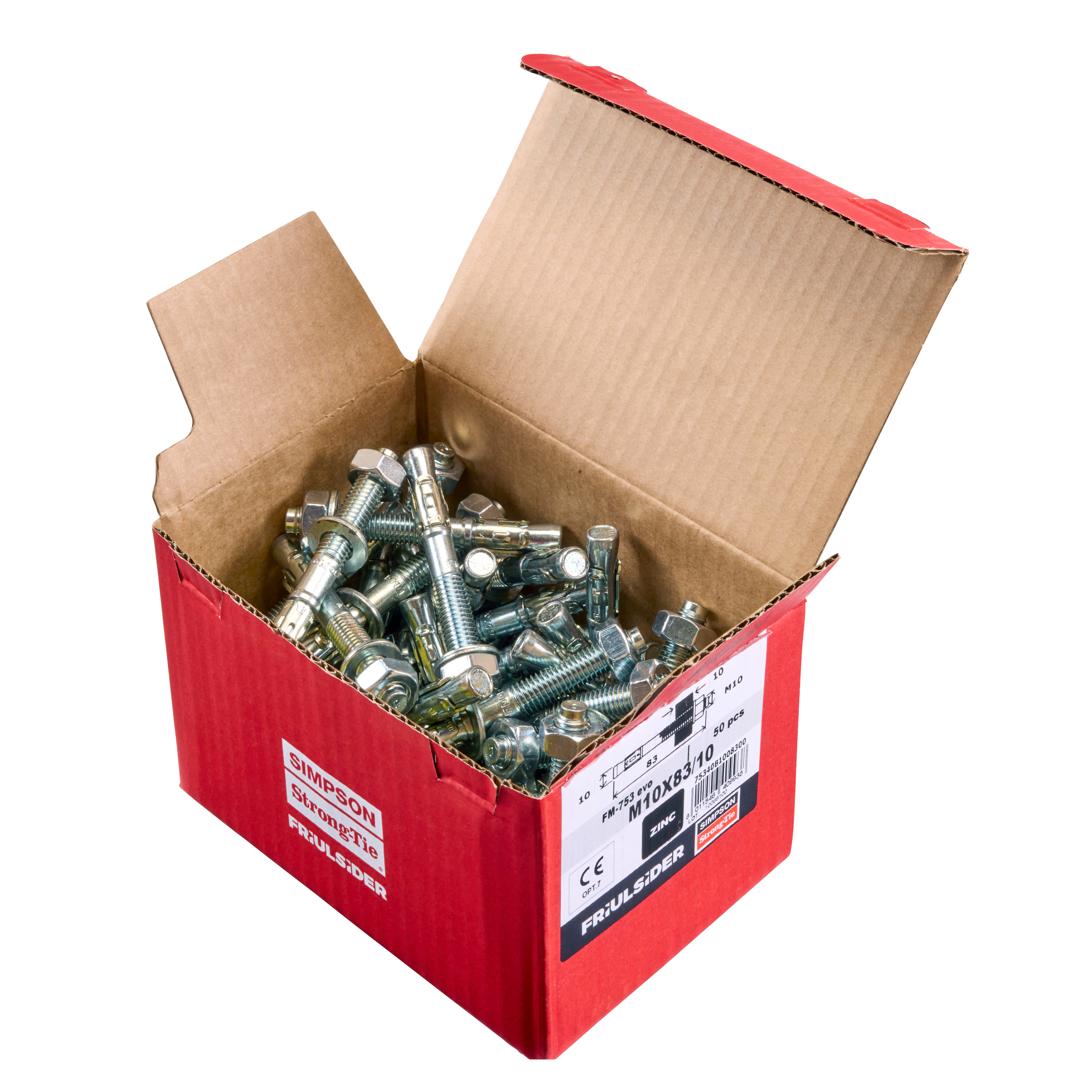 | Références | Reference | NOBB nr. [NOBB nr.] | Dimensions [ØxL] | ID1) | Longueur filetée | Epaisseur de la pièce à fixer [tfix] | Ø perçage [d0] | Prof. mini de perçage [h1] | Profondeur d'ancrage [hef] | Ø perçage dans pce à fixer [df] | Ep. mini du support [hmin] | Couple de serrage [Tinst] | Ouverture de clé sur plat [SW] | Qté par boîte | Qté surconditionnement | Poids [kg] |
