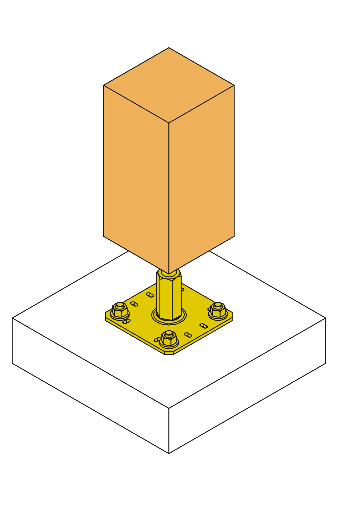 - Fixer cette platine au poteau à l’aide de tirefonds LAG ou SSH (pré-perçage nécessaire).