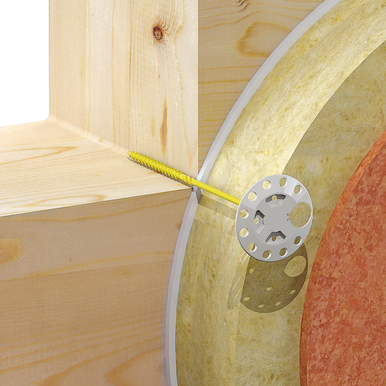 La rondelle polypropylène ISO-RG, utilisée avec une vis tête fraisée SWC Ø6,0 mm, est conçue pour la fixation de panneaux isolant sur support bois.