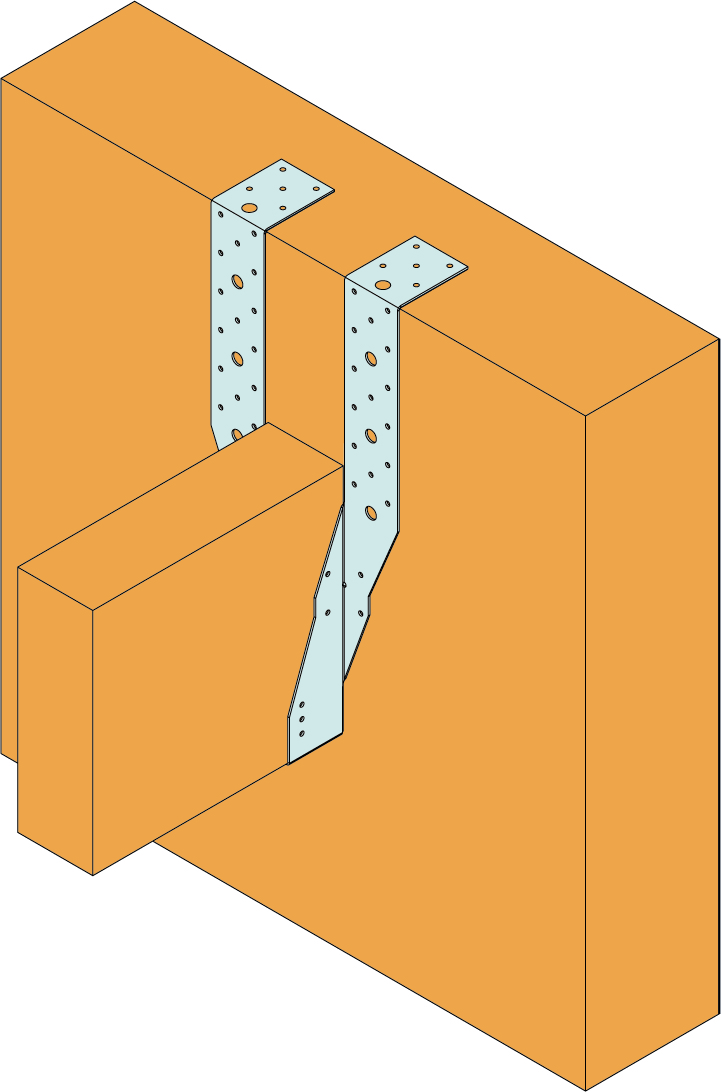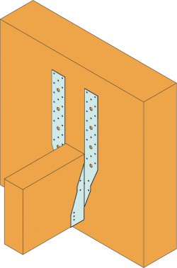 - Ailes pliées pour ajuster la hauteur du sabot par rapport à l'élément porteur. Clouer les ailes rabattues.