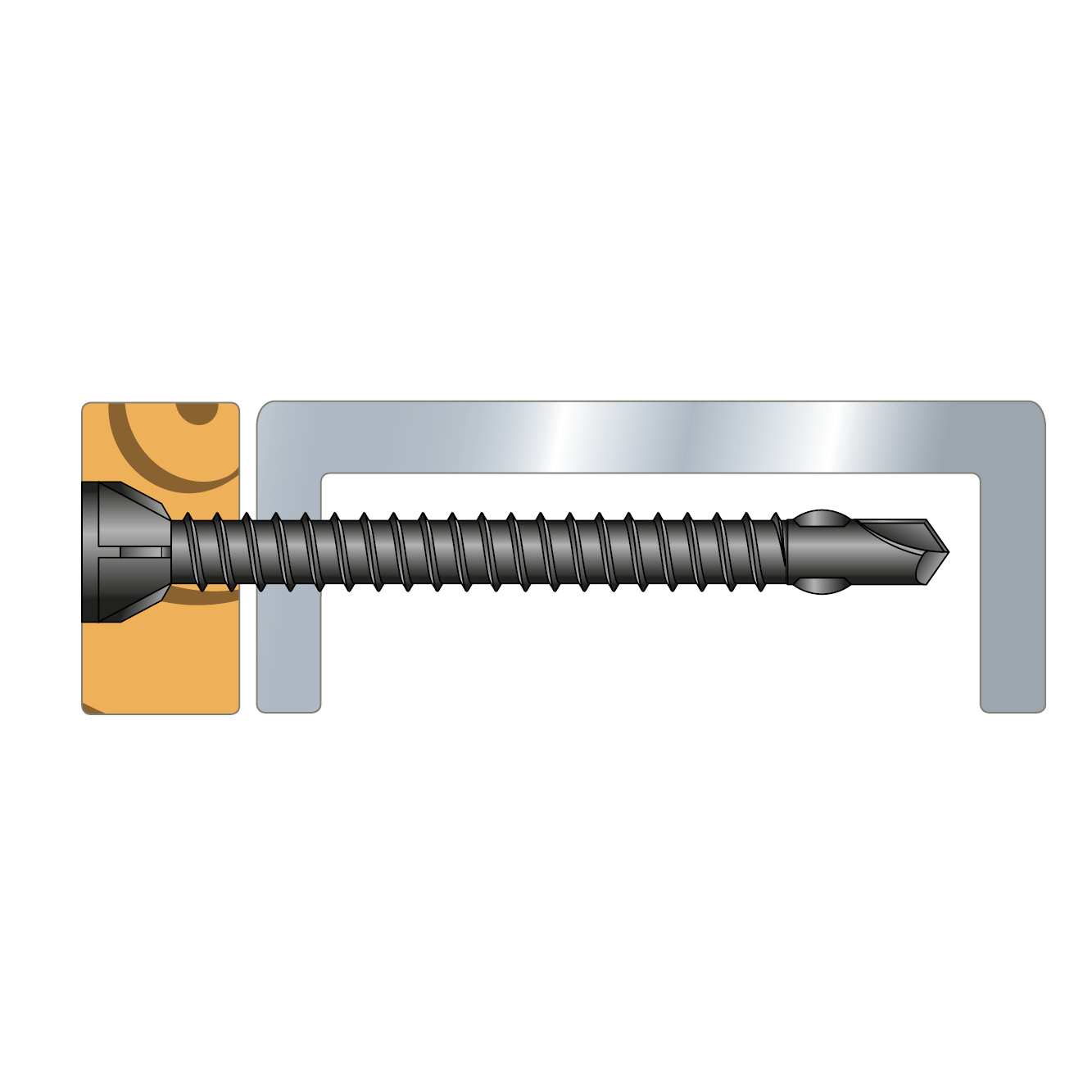 Bois sur support acier jusqu'à 12 mm