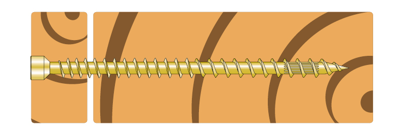 - Tête cylindrique : diminue l’éclatement du bois et rend la fixation invisible dans le bois,
